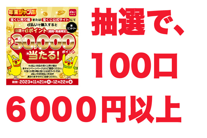 2023-11-24 ドコモ d払い 宝くじ購入で 最大3万ポイントが当たる!? その他 PR ドコモ d払い 宝くじ購入で 最大3万ポイントが当たる!? d払いで宝くじを6000円以上購入で、抽選でdポイント(期間・用途限定)が最大3万ポイントが当たるキャンペーンです。 抽選の内訳は? 1等が3万ポイント(100口) 2等が5000ポイント(400口) 3等が1000ポイント(5000口) ただし、エントリーが必要ですよー。 service.smt.docomo.ne.jp ドコモHPより PR ドコモ d払い 宝くじ購入で 最大3万ポイントが当たる!? やっぱりドコモでよかったです! ご訪問、ありがとうございました